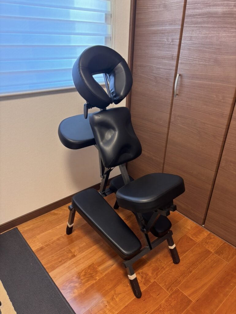 うつ伏せでの治療が長いと、「呼吸が苦しい」、「体勢がきつい」という患者様が何名もいらっしゃいまして、その時間を短くするために、頸部、腰背部の鍼灸治療は座って施術できるようにしました。